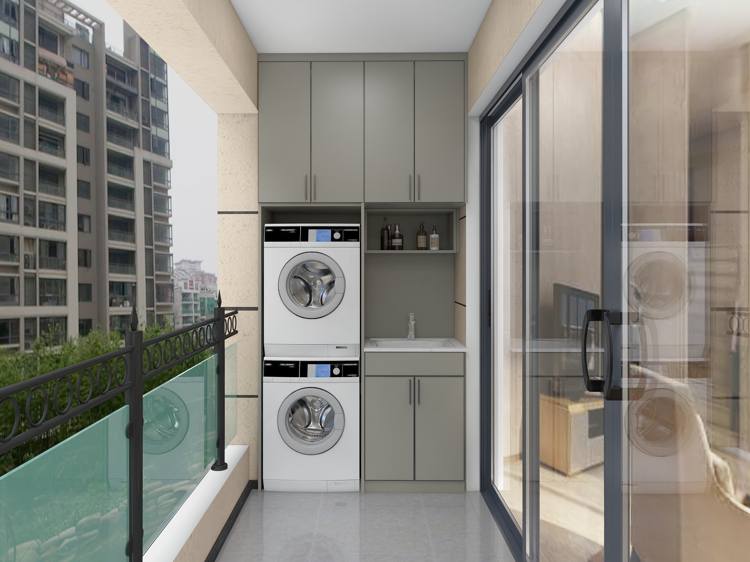 现代双洗衣机阳台柜